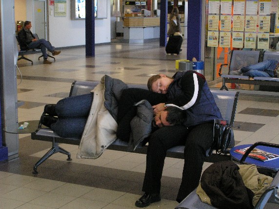Geschafft von der langen Nacht warteten wir in Berlin Schönefeld auf unseren Rückflug nach Stuttgart: